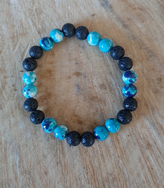 Bracelet pierre fleur de pluie et pierre de lave